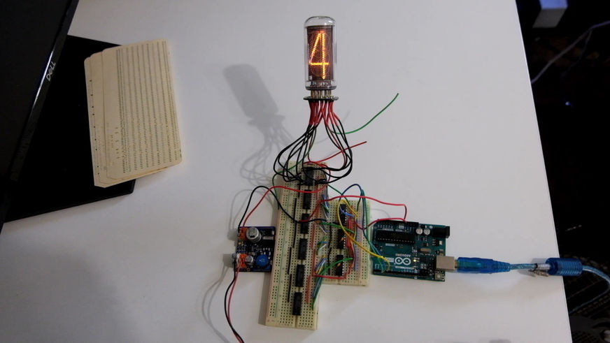 THE BOARD USES HIGH VOLTAGE ICS, DRIVER CIRCUITRY, AND SHIFT REGISTERS TO CONTROL 10 NUMERIC DIGITS AND DECIMAL POINTS. THE DRIVE CIRCUITRY AND MICROCONTROLLER CODE WAS PROTOTYPED ON A BREADBOARD WITH A SINGLE TUBE AND A SINGLE DIRECT DRIVEN DRIVER IC. i THEN EXPANDED TO MULTIPLE BLOCKS OF PARALLEL SHIFT REGISTERS TO CREATE A MULTI-DIGIT VERSION WITH WIRING COMPARABLE TO THE FINAL PCB. AFTER MANY ITERATIONS OF POWER FILTERING, MOUNTING, AND IC INTERFACE CIRCUITRY, I DESIGNED THE FINAL TRACE LAYOUT AND EXPECT TO SOLDER COMPONENTS TO IT SOON.